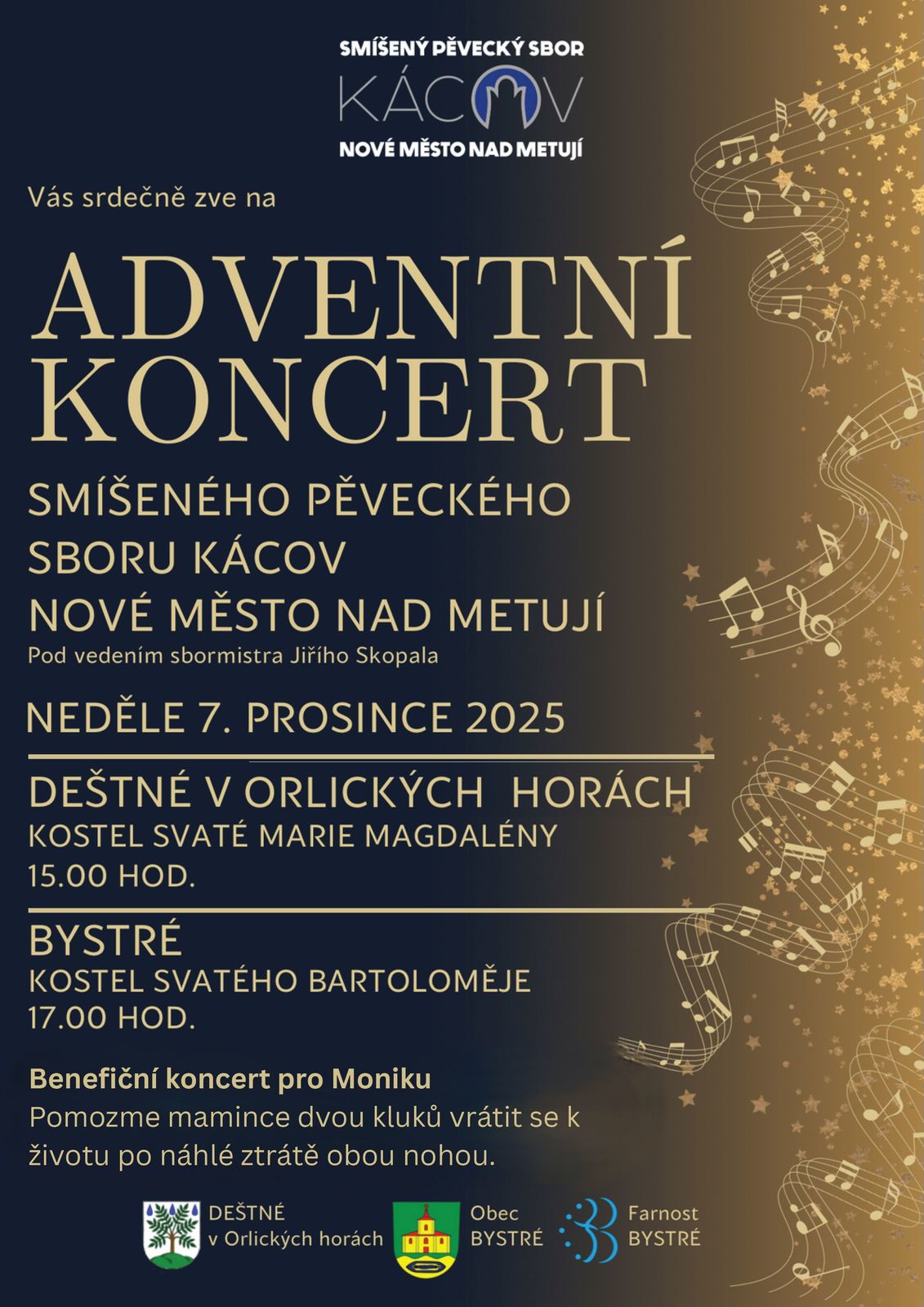Úvod > Obec > Aktuality > Benefiční adventní koncert smíšeného pěveckého sboru Kácov v Deštném a v Bystrém