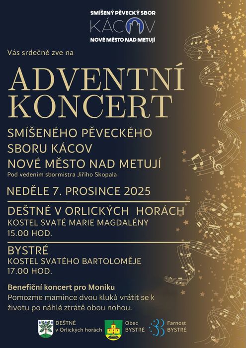 Benefiční adventní koncert smíšeného pěveckého sboru Kácov v Deštném a v Bystrém