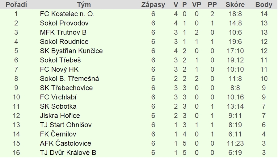 Příznivci sportu, obzvlášť fotbalu se tuto sobotu od 17 hodin mohou přijít podívat na mistrovské utkání 1. A třídy, kdy se naše mužstvo, které je po šesti odehraných zápasech na 13. místě v tabulce, střetne se soupeřem FC Nový Hradec Králové, který je sedmý.