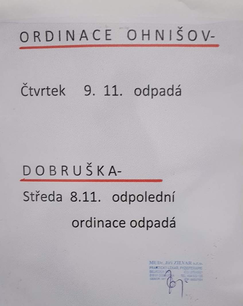 Úvod > Obec > Aktuality > Oznámení MUDr. Zilvar