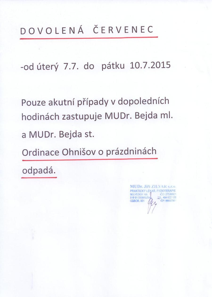 Úvod > Obec > Aktuality > Oznámení MUDr. Zilvar