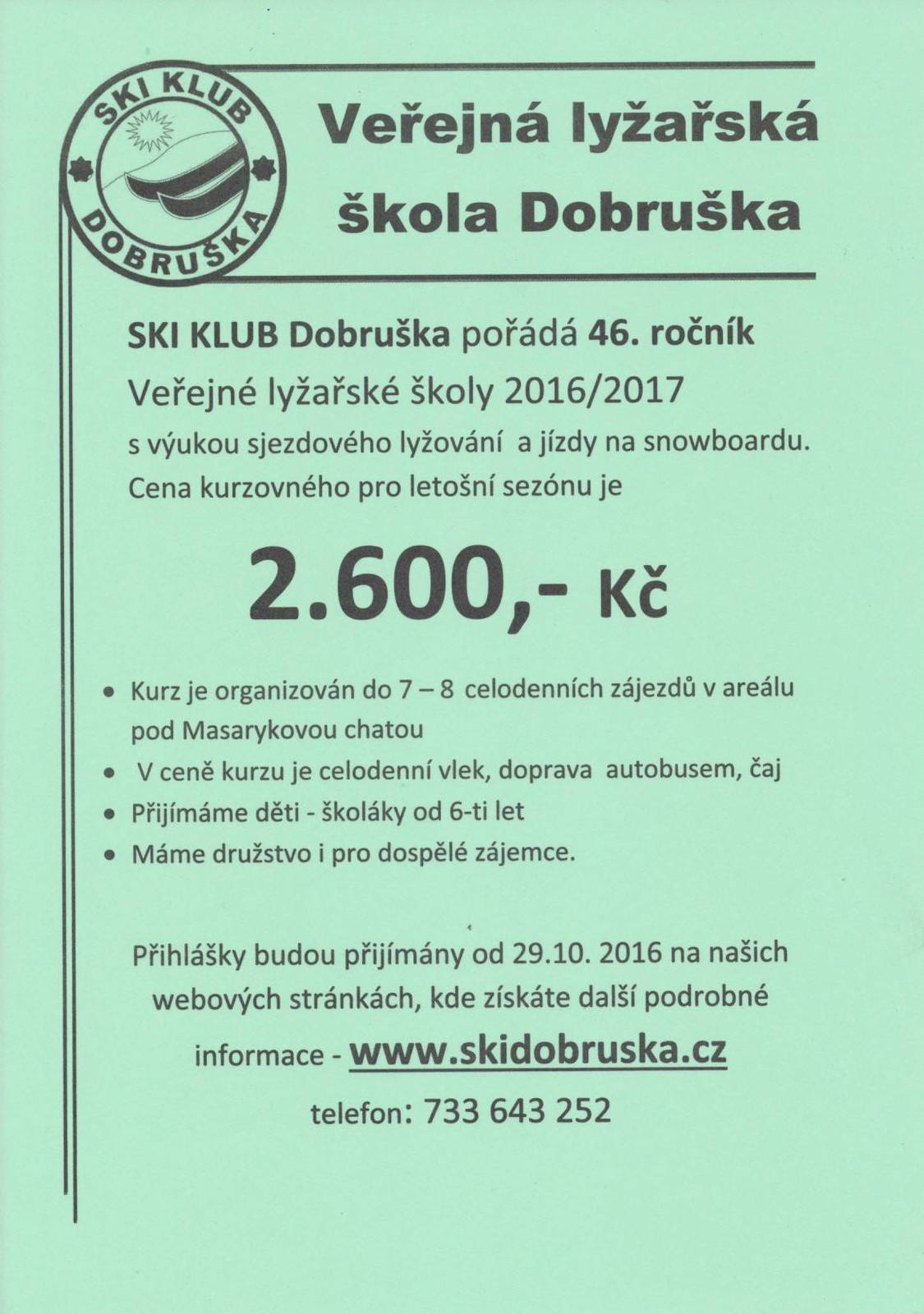 Oznámení - veřejná lyžařská škola Dobruška