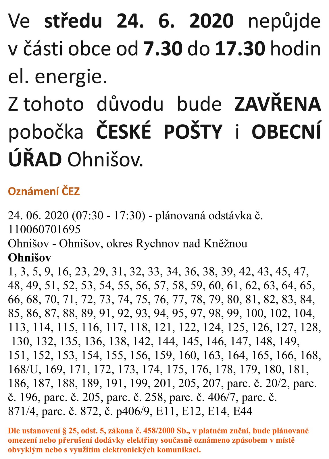 Úvod > Obec > Aktuality > Připomenutí - odstávka el. energie a související omezení