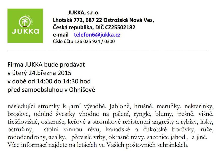 Úvod > Obec > Aktuality > Prodej stromků - JUKKA