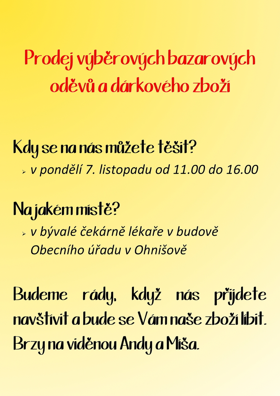 Úvod > Obec > Aktuality > Prodej výběrových bazarových oděvů a dárkového zboží