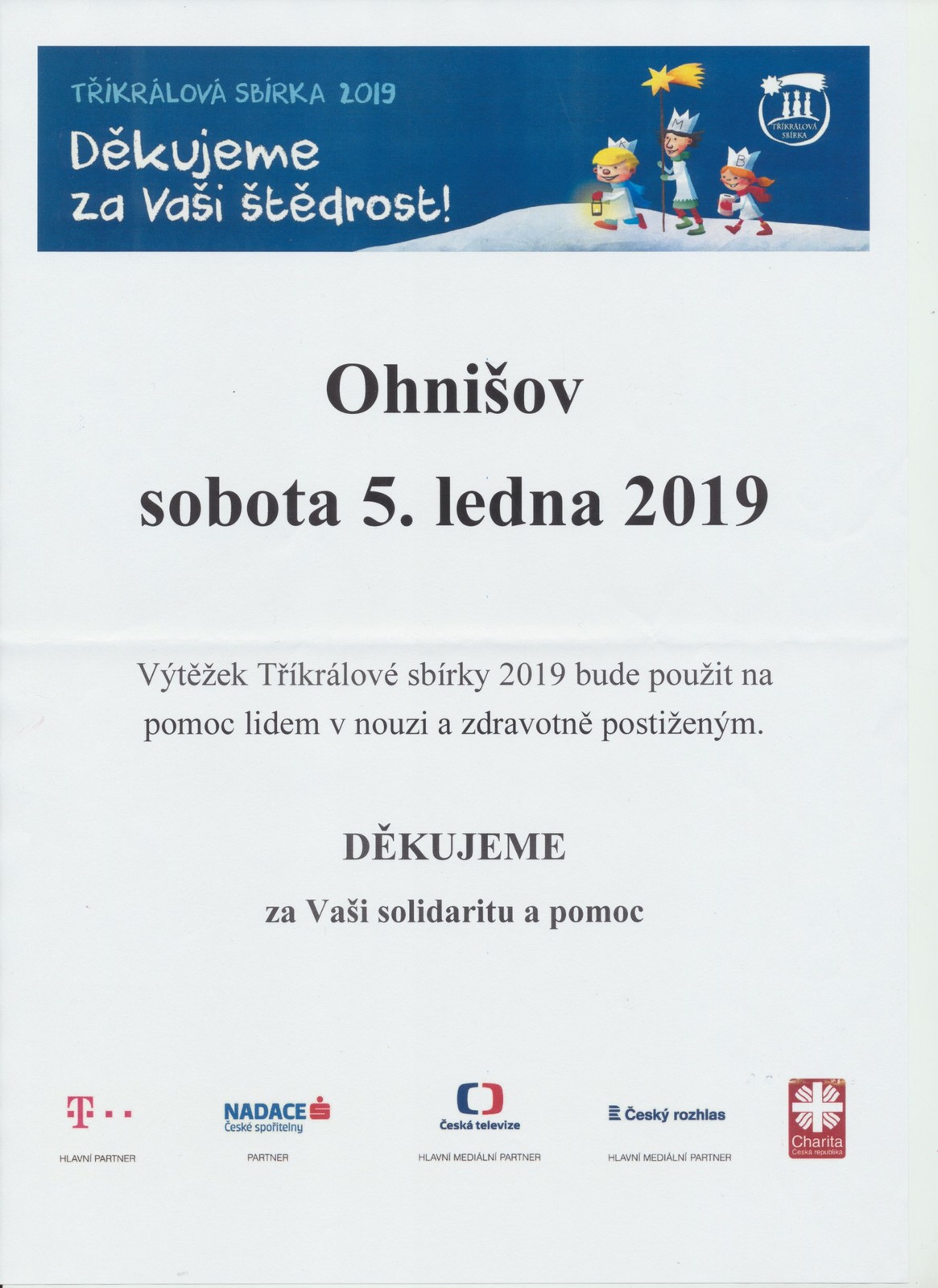 Úvod > Obec > Aktuality > TŘÍKRÁLOVÁ SBÍRKA V OHNIŠOVĚ 5.1.2019