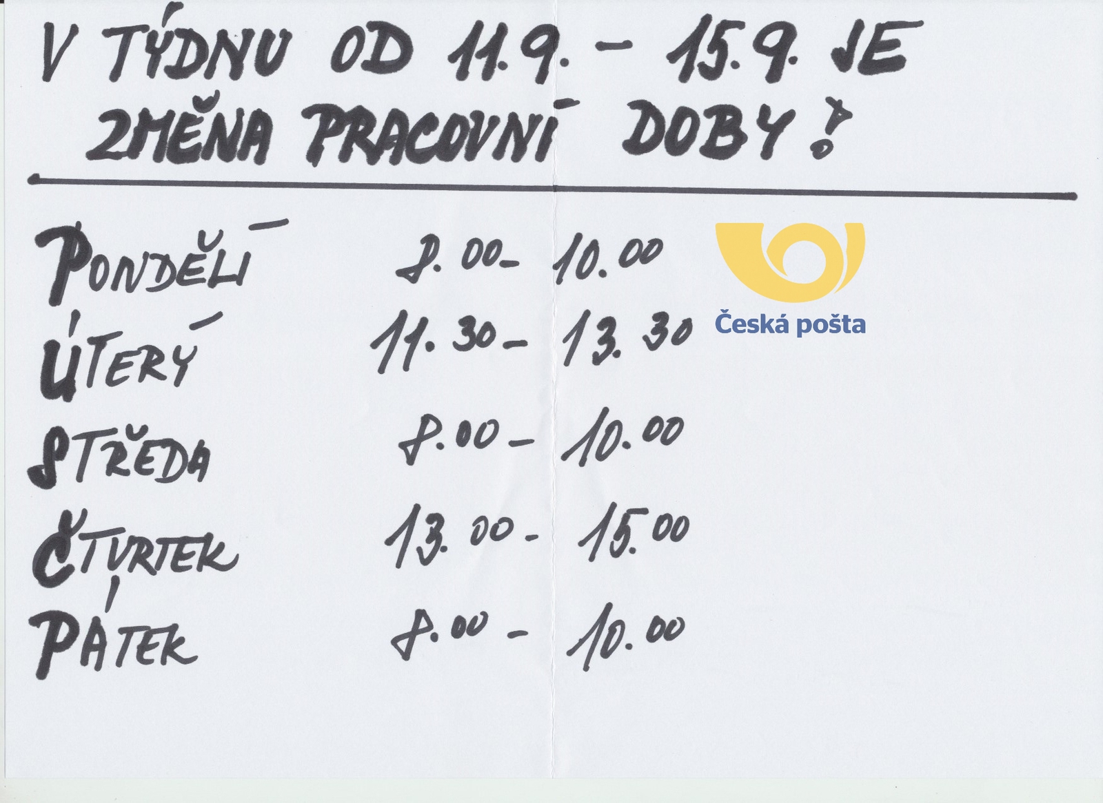 Úvod > Obec > Aktuality > Změna otevírací doby pobočky České pošty v Ohnišově