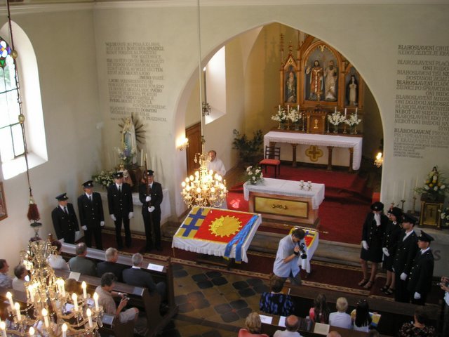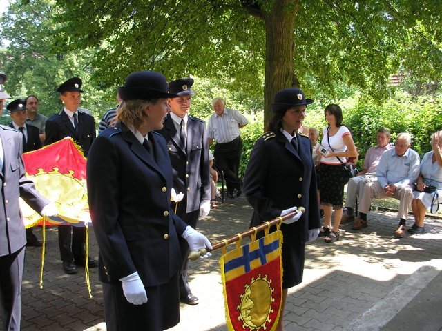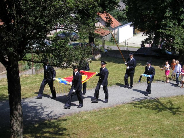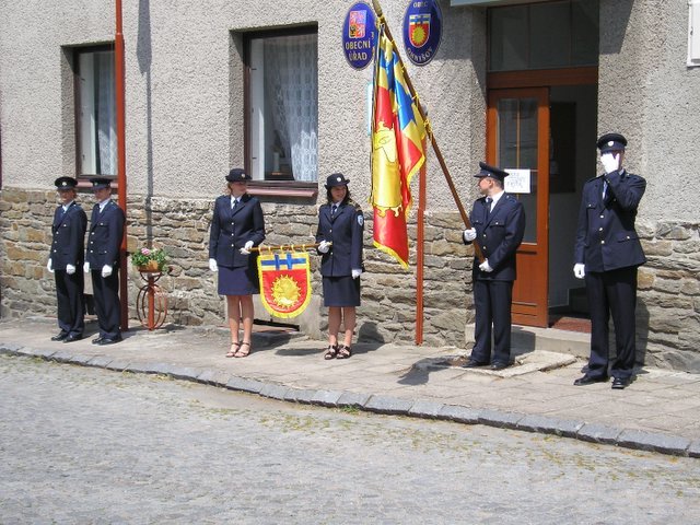 Naše státní vlajka a prapor obce jsou slavnostně vytaženy na stožáry