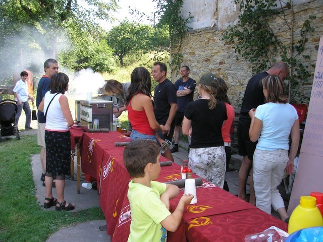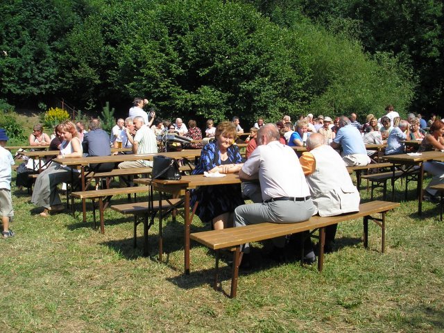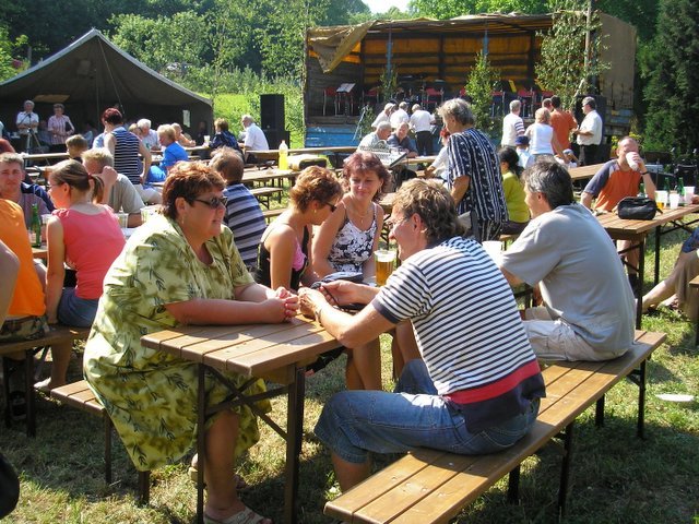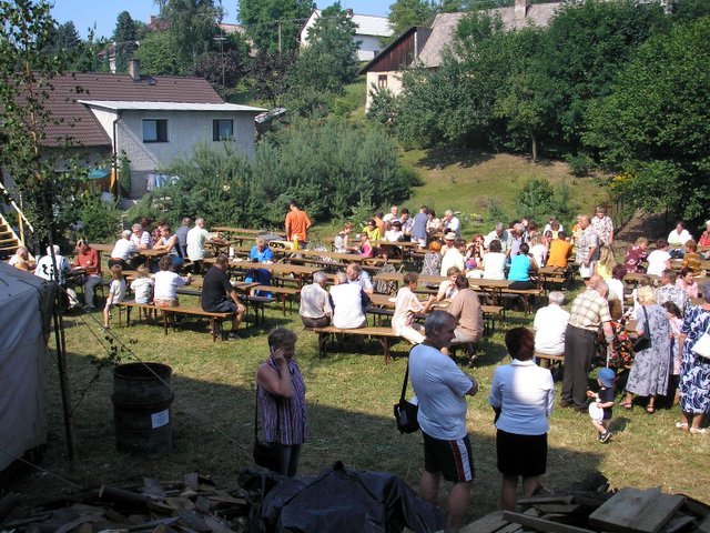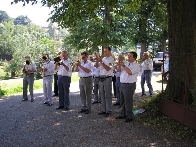 Slavnost pokračuje srazem rodáků, po uvítání hraje STAVOSTROJKA