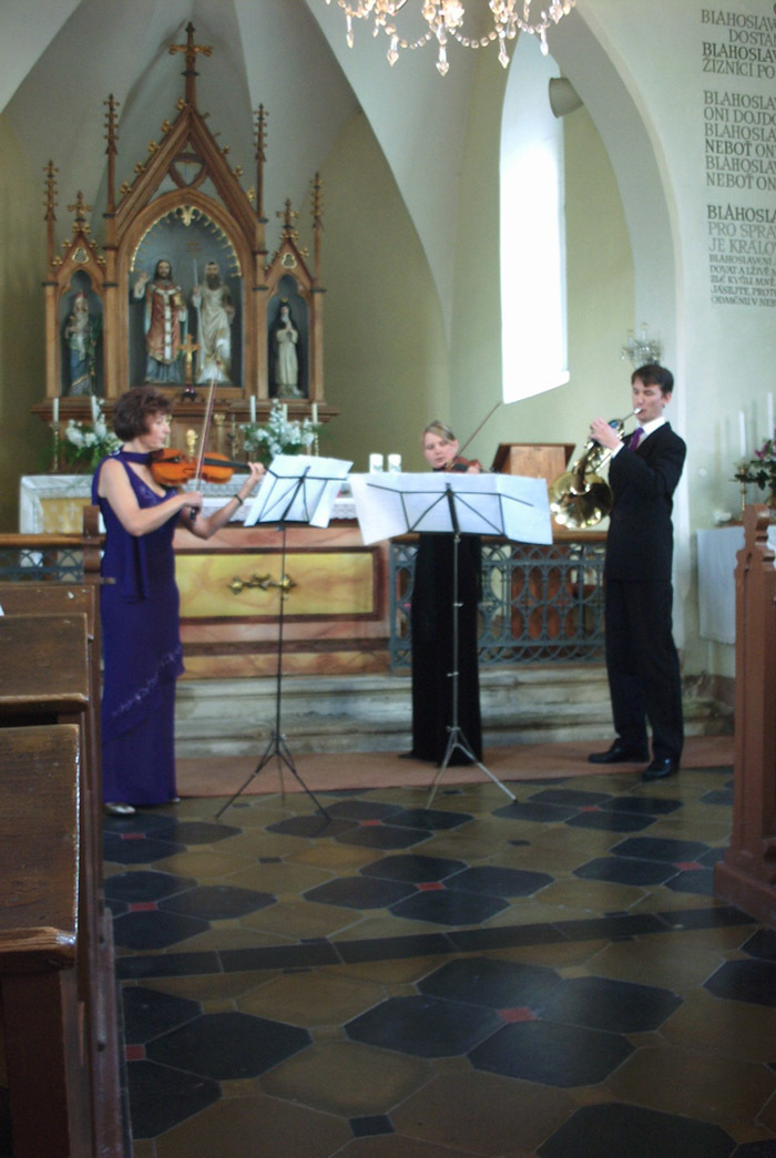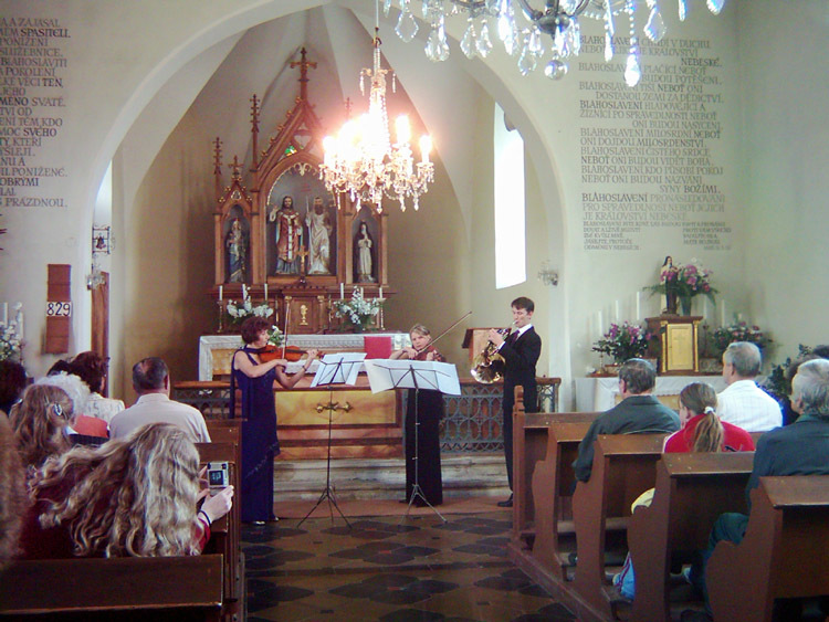 Tóny houslí, varhan a lesního rohu rozezněly v pondělí na svátek Cyrila a Metoděje klenbu starodávného kostela v Ohnišově, jenž je jim zasvěcen. Koncert z děl slavných mistrů uspořádala po dohodě s paní starostkou Dragúňovou místní rodačka - paní Jitka Vondřejcová - Jorgensen se svým manželem, synem Pavlem a slečnou Ellen R. Jensen. Paní Jitka žije dnes v Dánsku, ale při příležitosti návštěvy své maminky připravila pro všechny přítomné, včetně paní senátorky Ing. Václavy Domšové , neobyčejně krásný zážitek povznášející mysl i srdce člověka od strastí běžného života.