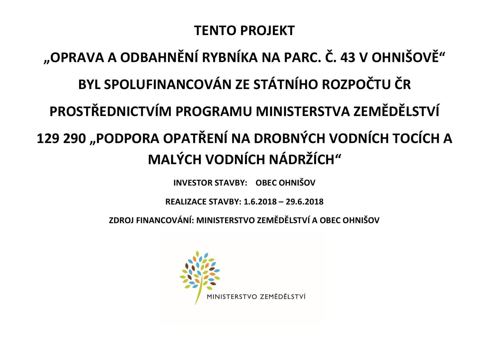 Úvod > Archiv > Dotace - archiv > Rok 2018 > Oprava a odbahnění rybníka na parc. č. 43 v Ohnišově