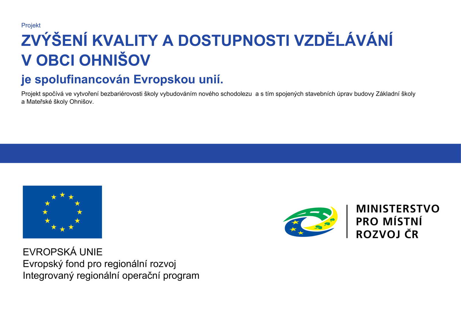 Úvod > Archiv > Dotace - archiv > Rok 2018 > Zvýšení kvality a dostupnosti vzdělávání v obci Ohnišov
